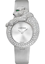 Cartier Feline de Cartier Watch - 43 mm White Gold Diamond Case - Light Gray Fabric Strap - HPI00341