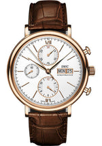 IWC Portofino Chronograph Watch - 42.0 mm 5N Gold Case - Silver Dial - Dark Brown Alligator Strap - IW391025