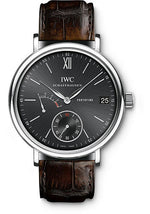 IWC Portofino Hand-Wound Eight Days Watch - 45 mm Stainless Steel Case - Black Dial - Dark Brown Alligator Strap - IW510102