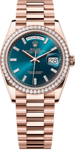 Rolex Day-Date 36 36mm Blue-Green Diamond-Set Dial Diamond Bezel President Bracelet - 128345RBR | 2024 Model