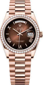 Rolex Day-Date 36 36mm Brown Ombré Dial Diamond Bezel President Bracelet - 128345RBR | 2024 Model