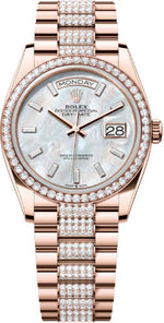 Rolex Day-Date 36 36mm White MOP Diamond-Set Dial Diamond-Set Bezel with Diamond-Set President Bracelet - 128345RBR | 2024 Model