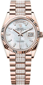 Rolex Day-Date 36 36mm White MOP Diamond-Set Dial Fluted Bezel President Bracelet - 128235 | 2024 Model