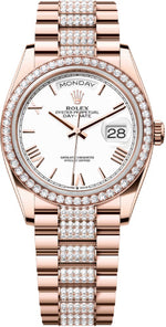 Rolex Day-Date 36 36mm White Roman Dial Diamond-Set Bezel with Diamond-Set President Bracelet - 128345RBR | 2024 Model