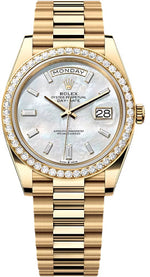 Rolex Day-Date 40 40mm White MOP Diamond-Set Dial Diamond Set Bezel President Bracelet - 228348RBR | 2024 Model