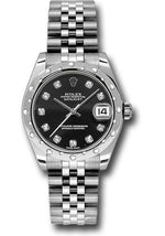 Rolex Steel and White Gold Datejust 31 Watch - 24 Diamond Bezel - Black Diamond Dial - Jubilee Bracelet - 178344 bkdj