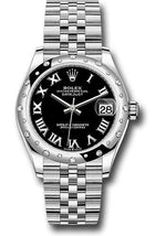 31mm white Rolesor case comprised of Oystersteel and 18K white gold, screw-down back, screw-down crown with twinlock double waterproofness system, 18K white gold domed bezel set with 24 diamonds, scratch-resistant sapphire crystal with cyclops lens over the date, black dial, Roman numerals, Rolex calibre 2236 perpetual self-winding movement with date at 3 o'clock, approximately 55 hours of power reserve, Oystersteel Jubilee bracelet with five-piece links, concealed folding Crownclasp buckle. Waterproof to 100 meters.