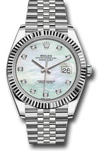 Rolex Steel and White Gold Rolesor Datejust 41 Watch - Fluted Bezel - White Mother-Of-Pearl Diamond Dial - Jubilee Bracelet - 126334 wmdj