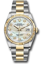Rolex Steel and Yellow Gold Rolesor Datejust 36 Watch - Fluted Bezel - White Mother-Of-Pearl Diamond Dial - Oyster Bracelet - 126233 mdo