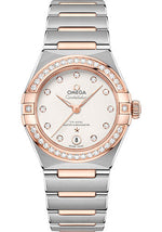 29 mm stainless steel and 18K Sedna gold case, transparent back, diamond-paved bezel, domed scratch-resistant sapphire crystal anti-reflective treatment on both sides, crystal white silvery dial with diamond hour markers and a date window at the 6 o'clock position, Caliber Omega 8700 self winding movement with co-axial escapement, chronometer, date, approximately 50 hours of power reserve, stainless steel and Sedna gold bracelet. Water resistant to 5 bar (50 metres / 167 feet).