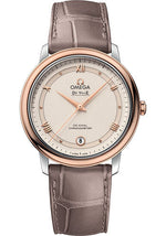 Omega De Ville Prestige Co-Axial Watch - 36.8 mm Steel And Red Gold Case - Varnished Shimmer Ivory-Beige Dial - Taupe-Brown Leather Strap - 424.23.37.20.09.001