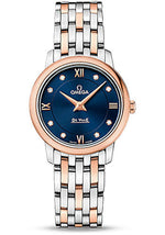 Omega De Ville Prestige Quartz Watch - 27.4 mm Steel Case - 18K Red Gold Bezel - Blue Diamond Dial - Red Gold-Steel Bracelet - 424.20.27.60.53.001