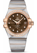 Omega Gents Constellation Chronometer Watch - 35 mm Brushed Steel And Red Gold Case - Diamond Bezel - Brown Diamond Dial - 123.25.35.20.63.001