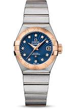 Omega Ladies Constellation Chronometer Watch - 27 mm Brushed Steel And Red Gold Case - Blue Supernova Diamond Dial - 123.20.27.20.53.001