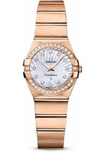 Omega Ladies Constellation Quartz Watch - 24 mm Brushed Red Gold Case - Diamond Bezel - Mother-Of-Pearl Diamond Dial - 123.55.24.60.55.001