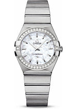 Omega Ladies Constellation Quartz Watch - 27 mm Brushed Steel Case - Diamond Bezel - Mother-Of-Pearl Dial - 123.15.27.60.05.001