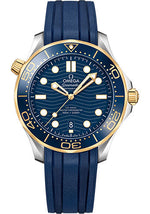 Omega Seamaster Diver 300M Co-Axial Master Chronometer Watch - 42 mm Steel And Yellow Gold Case - Unidirectional Bezel - Blue Ceramic Dial - Blue Rubber Strap - 210.22.42.20.03.001
