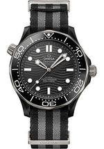 Omega Seamaster Diver 300M Co-Axial Master Chronometer Watch - 43.5 mm Black Ceramic Case - Brushed Black Ceramic [Zro2] Dial - 5-Stripe Black And Grey Nato Strap - 210.92.44.20.01.002