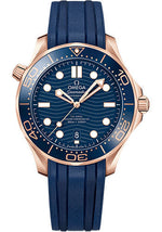 Omega Seamaster Diver 300M Omega Co-Axial Master Chronometer - 42 mm Sedna Gold Case - Blue Dial - Blue Rubber Strap - 210.62.42.20.03.001