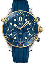 Omega Seamaster Diver 300M Omega Co-Axial Master Chronometer Chronograph - 44 mm Steel And Yellow Gold Case - Blue Dial - Blue Rubber Strap - 210.22.44.51.03.001
