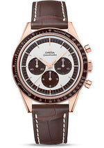Omega Seamaster Moonwatch Numbered Edition Watch - 39.7 mm Sedna Gold Case - Ceramic Bezel - Silver Dial - Brown Leather Strap - 311.63.40.30.02.001
