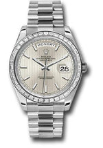 Rolex 950 Platinum Day-Date 40 Watch -  Bezel - Silver Strip Motif Index Dial - President Bracelet - 228396TBR ssmip