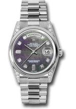 Rolex Platinum Day-Date 36 Watch - Domed Bezel - Dark Mother-Of-Pearl Diamond Dial - President Bracelet - 118296 dkmdp