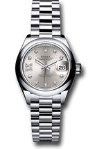 Rolex Platinum Lady-Datejust 28 Watch - Domed Bezel - Silver Diamond Star Dial - President Bracelet - 279166 s9dix8dp
