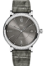 IWC Portofino Midsize Automatic Watch - 37 mm Stainless Steel Case - Grey Dial - Grey Alligator Strap - IW458104