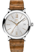 IWC Portofino Midsize Automatic Watch - 37 mm Stainless Steel Case - Silver Dial - Light Brown Alligator Strap - IW458101