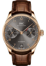 IWC Portugieser Automatic Watch - 42.3 mm 5N Gold Case - Slate Dial - Brown Alligator Strap - IW500702