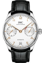 IWC Portugieser Automatic Watch - 42.3 mm Stainless Steel Case - Silver Dial - Black Alligator Strap - IW500704