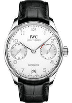 IWC Portugieser Automatic Watch - 42.3 mm Stainless Steel Case - Silver Dial - Black Alligator Strap - IW500712
