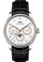 IWC Portugieser Perpetual Calendar 42 - Stainless Steel Case - Silver-Plated Dial - Black Alligator Leather Strap - IW344203