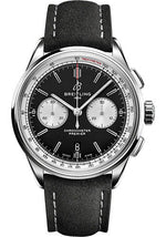 Breitling Premier B01 Chronograph 42 Watch - Stainless Steel - Black Dial - Anthracite Calfskin Leather Strap - Folding Buckle - AB0118371B1X1