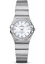 Omega Ladies Constellation Quartz Watch - 24 mm Brushed Steel Case - Diamond Bezel - Mother-Of-Pearl Dial - 123.15.24.60.05.001