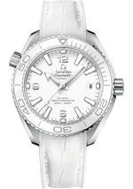 Omega Planet Ocean 600M Co-Axial Master Chronometer Watch - 39.5 mm Steel Case - Unidirectional White Cermaic Bezel - White Dial - White Leather Strap - 215.33.40.20.04.001