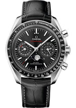 Omega Speedmaster Moonphase Master Chronometer Chronograph Watch - 44.25 mm Steel Case - Black Liquid Metal Bezel - Black Dial - Black Leather Strap - 304.33.44.52.01.001