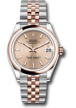 31mm Everose Rolesor case comprised of Oystersteel and 18K Everose gold, screw-down back, screw-down crown with twinlock double waterproofness system, 18K Everose gold domed bezel, scratch-resistant sapphire crystal with cyclops lens over the date, rose dial, index hour markers, Rolex calibre 2236 perpetual self-winding movement with date at 3 o'clock, approximately 55 hours of power reserve, Everose Rolesor Jubilee bracelet with semi-circular three-piece links, concealed folding Crownclasp buckle. Waterproof to 100 meters. Baselworld 2019 release.