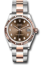31mm Everose Rolesor case comprised of Oystersteel and 18K Everose gold, screw-down back, screw-down crown with twinlock double waterproofness system, 18K Everose gold fluted bezel, scratch-resistant sapphire crystal with cyclops lens over the date, chocolate dial, diamond hour markers, Rolex calibre 2236 perpetual self-winding movement with date at 3 o'clock, approximately 55 hours of power reserve, Eversose Rolesor Oyster bracelet made from a combination of steel and 18K everose gold with flat three-piece links, folding Oysterclasp buckle with Easylink 5mm comfort extension link. Waterproof to 100 meters. Baselworld 2019 release.