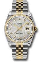 Rolex Steel and Yellow Gold Rolesor Datejust 36 Watch - 52 Brilliant-Cut Diamond Bezel - Mother-Of-Pearl Diamond Dial - Jubilee Bracelet - 116243 mdj