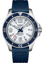 Breitling Superocean Automatic 42 Watch - Stainless Steel - White Dial - Blue Rubber Strap - Folding Buckle - A17366D81A1S2