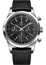 Breitling Transocean Chronograph Watch - Steel - Black Dial - Black Rubber Aero Classic Strap - Folding Buckle - AB015212/BA99/279S/A20D.2