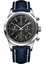 Breitling Transocean Chronograph Watch - Steel - Black Dial - Blue Leather Strap - Folding Buckle - AB015212/BA99/112X/A20D.1
