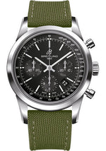 Breitling Transocean Chronograph Watch - Steel - Black Dial - Khaki Green Military Strap - Tang Buckle - AB015212/BA99/106W/A20BA.1
