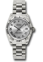 Rolex White Gold Datejust 31 Watch - Fluted Bezel - Rhodium Roman Dial - President Bracelet - 178279 rrp