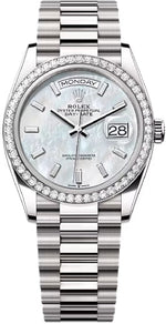 Rolex Day-Date 36 36mm White MOP Diamond-Set Dial Diamond-Set Bezel President Bracelet - 128349RBR | 2024 Model