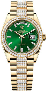 Rolex Day-Date 36 36mm Bright Green Diamond-Set Dial Diamond-Set Bezel with Diamond-Set President Bracelet - 128348RBR | 2024 Model