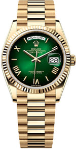 Rolex Day-Date 36 36mm Green Ombré Dial Fluted Bezel President Bracelet - 128238 | 2024 Model