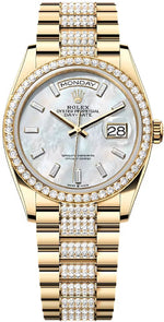 Rolex Day-Date 36 36mm White MOP Diamond-Set Dial Diamond-Set Bezel with Diamond-Set President Bracelet - 128348RBR | 2024 Model